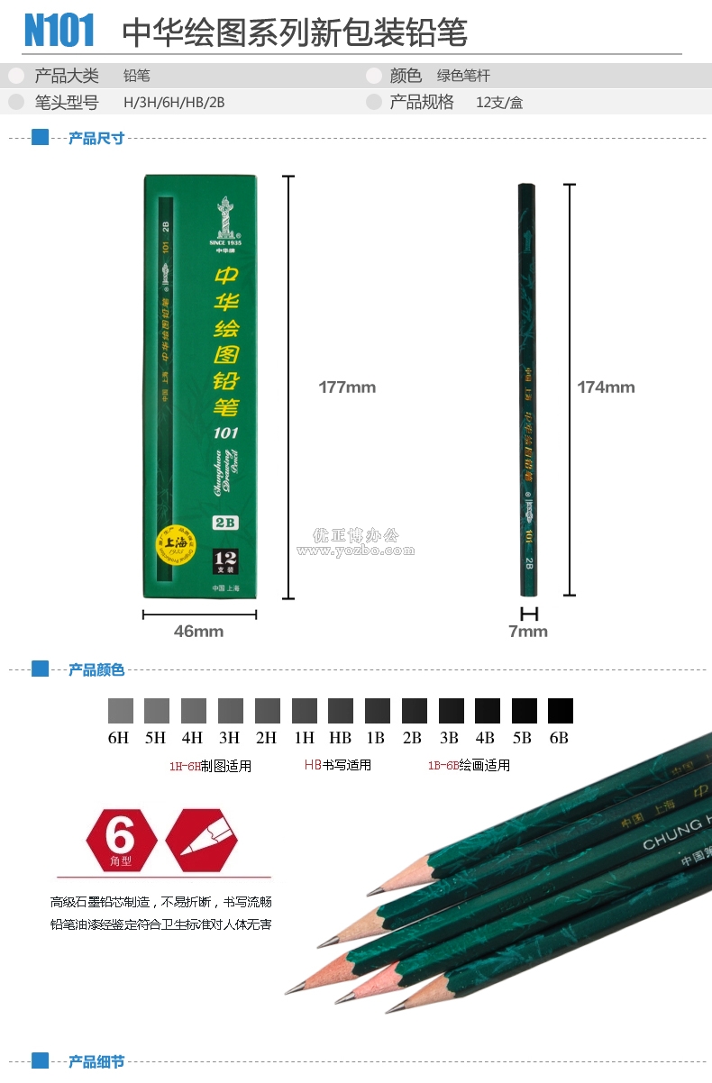 > 辦公用品 > 書寫工具 > 鉛筆 > 中華鉛筆 繪圖木制鉛筆 繪圖鉛筆101-2B~6B
