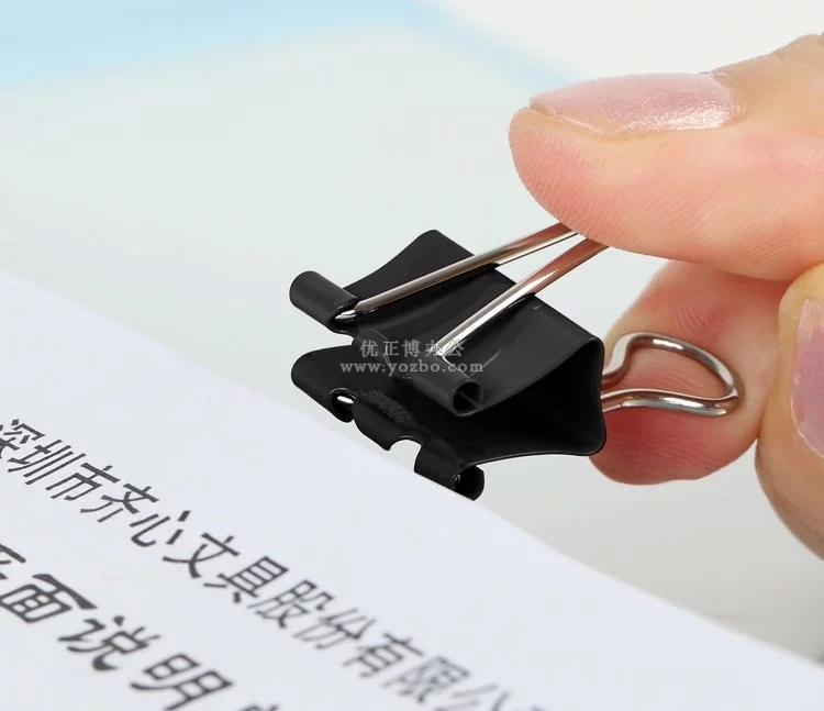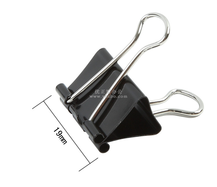 齊心B3609 黑色強力長尾票夾(5#,75頁,盒裝) ★高強度夾力,反復使用不松弛; ★金屬涂層,防銹更顯著; ★經濟實惠,環保,使用頻率最高的長尾夾; ★規格:19mm(5#),最大夾紙75頁,12只/盒;