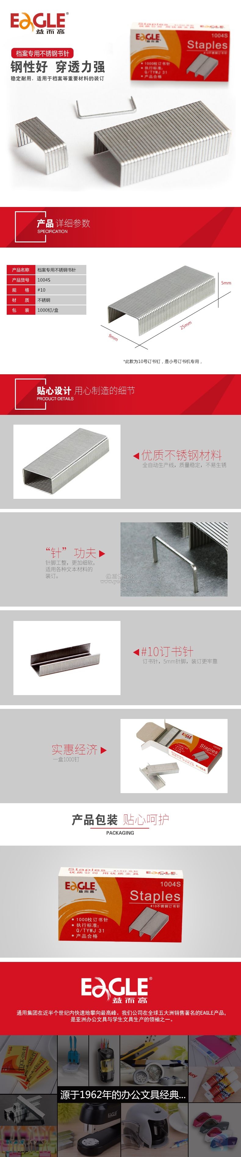 > 辦公用品 > 桌面用品 > 訂書針 > 益而高 檔案專用不銹鋼10號(hào)小釘書針 1004S