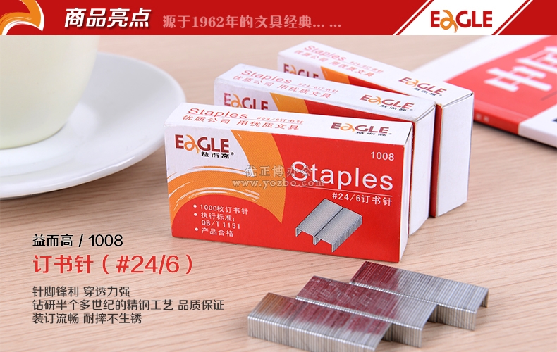 > 辦公用品 > 桌面用品 > 訂書針 > 益而高 檔案專用不銹鋼書針1008s 24/6