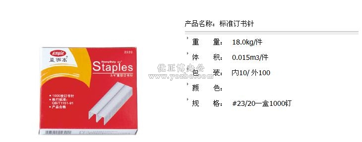 > 辦公用品 > 桌面用品 > 訂書針 > 益而高 標準訂書針2320 #23/20一盒1000釘