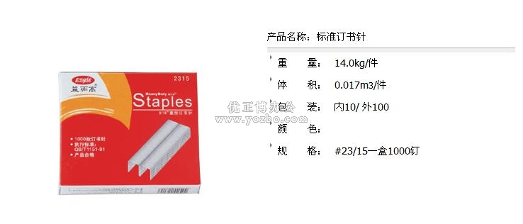 > 辦公用品 > 桌面用品 > 訂書針 > 益而高 標準訂書針2315 #23/15一盒1000釘