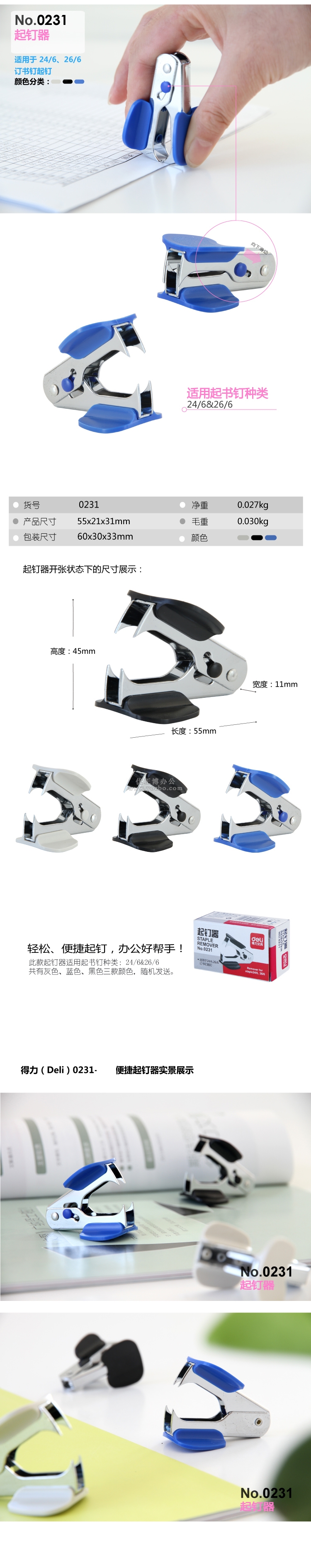 > 辦公用品 > 桌面用品 > 起釘器 > 得力0231起釘器 訂書機伴侶(書釘種類24/6&26/6 )