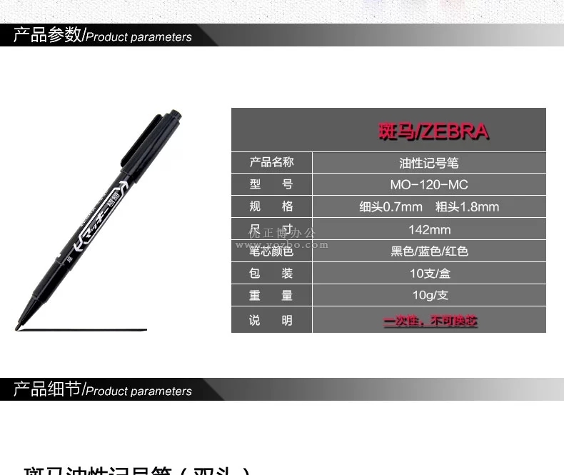 > 辦公用品 > 書寫工具 > 記號/油性筆 > 斑馬小雙頭油性記號筆 光盤筆 MO-120-MC