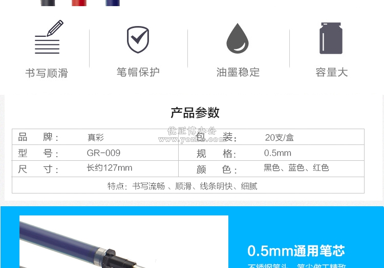 > 辦公用品 > 書寫工具 > 筆芯 > 真彩009中性筆芯 0.5mm