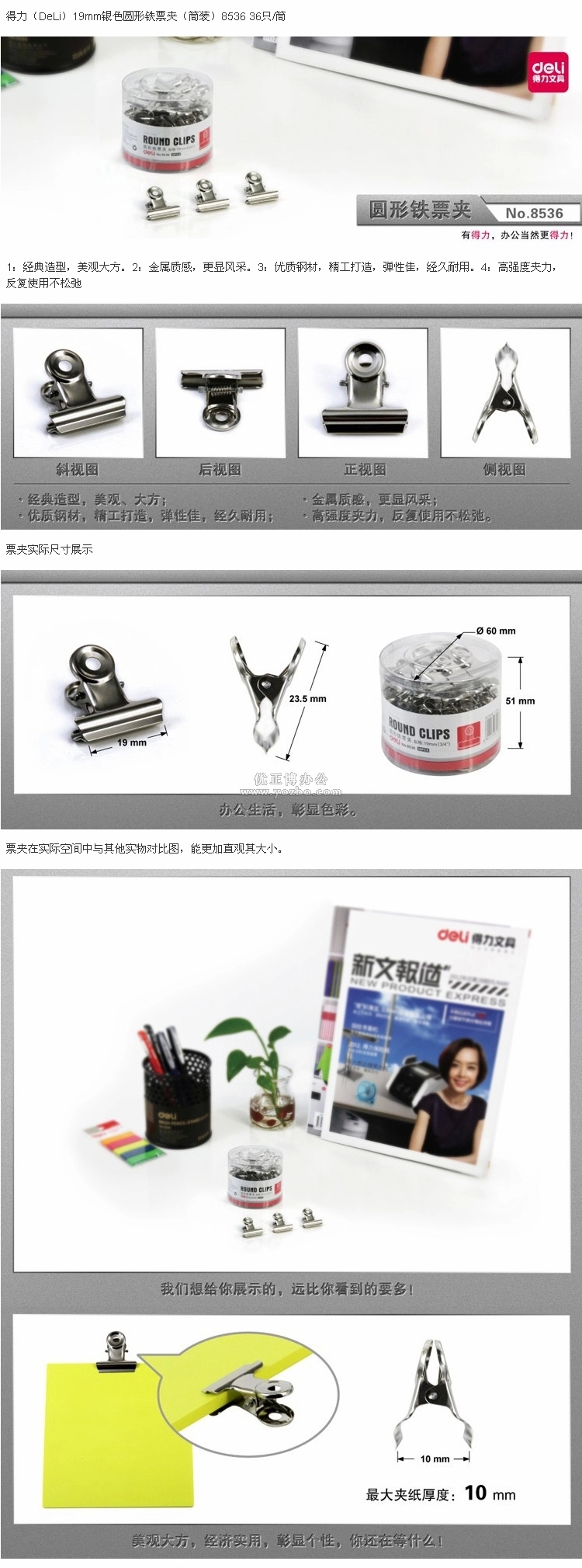 得力 筒裝圓形鐵票夾 規(guī)格19~64mm