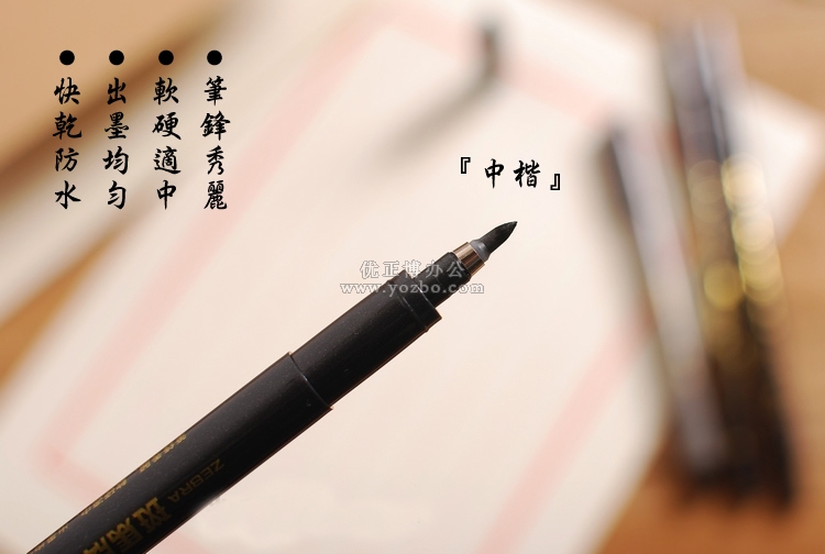 - 筆鋒秀麗,軟硬適中,出墨均勻,快干防水,適合一般中楷書寫及簽名之用.