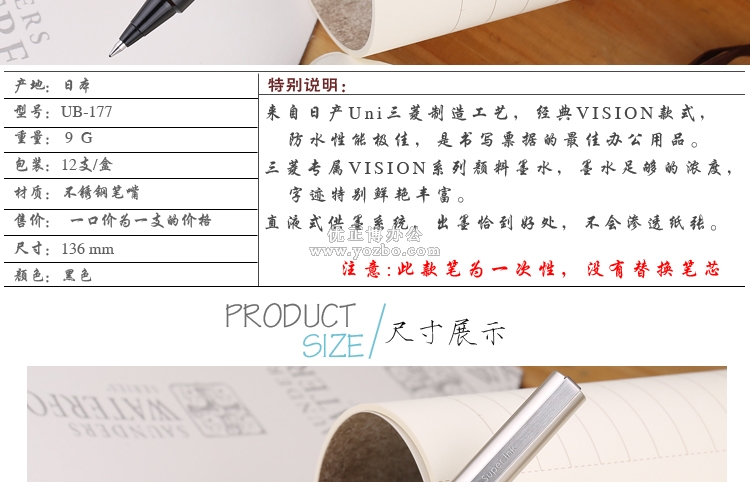 > 辦公用品 > 書寫工具 > 簽字筆 > 三菱 耐水性走珠筆簽字筆 UB-177 0.7mm