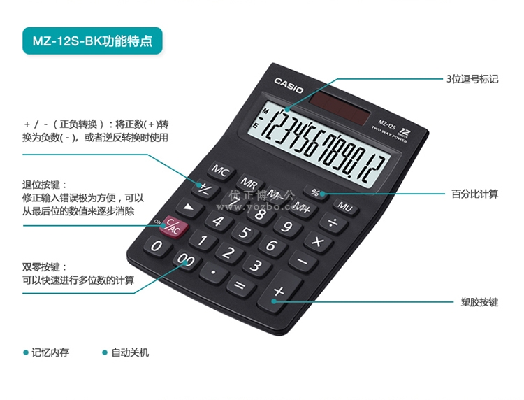 > 辦公用品 > 桌面用品 > 計算器 > 卡西歐(CASIO)12位數桌面型計算器 MZ-12S