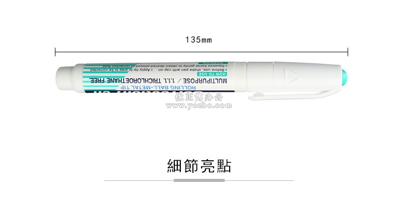 產(chǎn)品特點(diǎn): 可用于任何紙張及NCR紙張,可涂改細(xì)字,精密準(zhǔn)確。修正液不含1-1-1三氯乙烷有毒性物質(zhì)不損健康。用料配合環(huán)保及工業(yè)安全標(biāo)準(zhǔn),可靠耐用