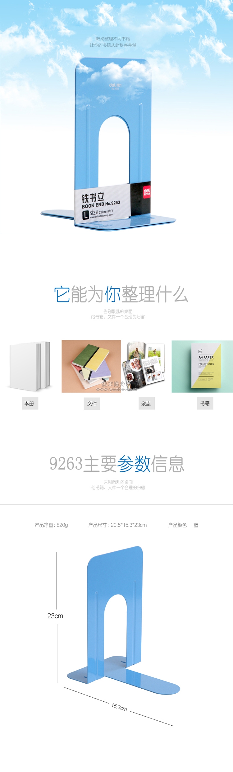 > 辦公用品 > 桌面用品 > 書立 > 得力9263 鐵書立 9寸(230mm)