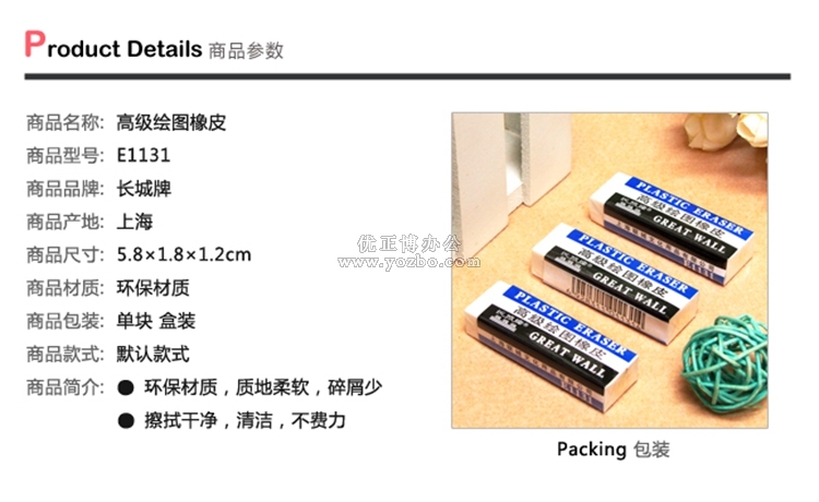 > 辦公用品 > 桌面用品 > 橡皮擦 > 長城牌 高級繪圖橡皮E1131(58*22*12mm)