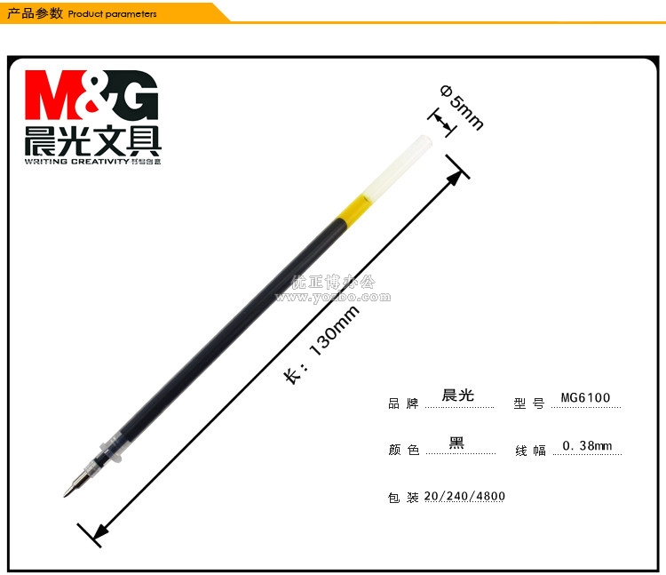 > 辦公用品 > 書寫工具 > 筆芯 > 晨光 MG6100 中性筆芯 0.38mm