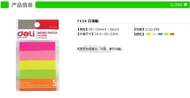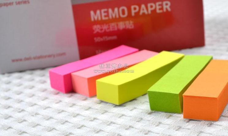 > 辦公用品 > 辦公本冊 > 告示貼 > 得力7154 熒光紙百事貼(五色裝) 50×15mm