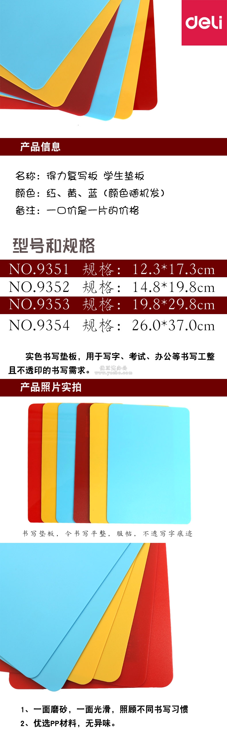 > 辦公用品 > 桌面用品 > 復(fù)寫墊板 > 得力復(fù)寫板9354(374x 260mm)
